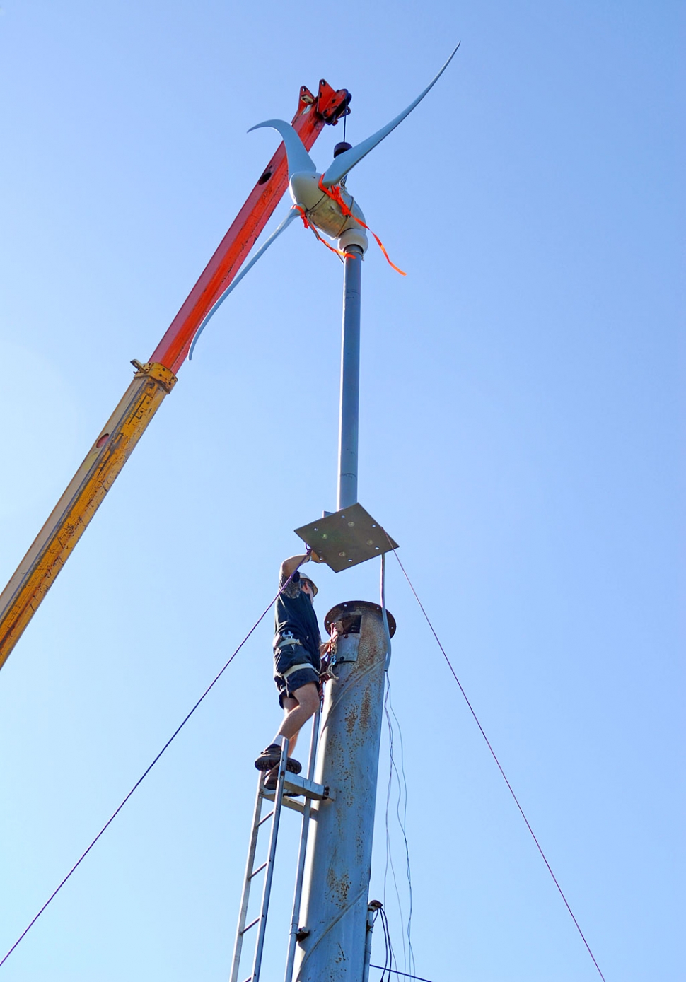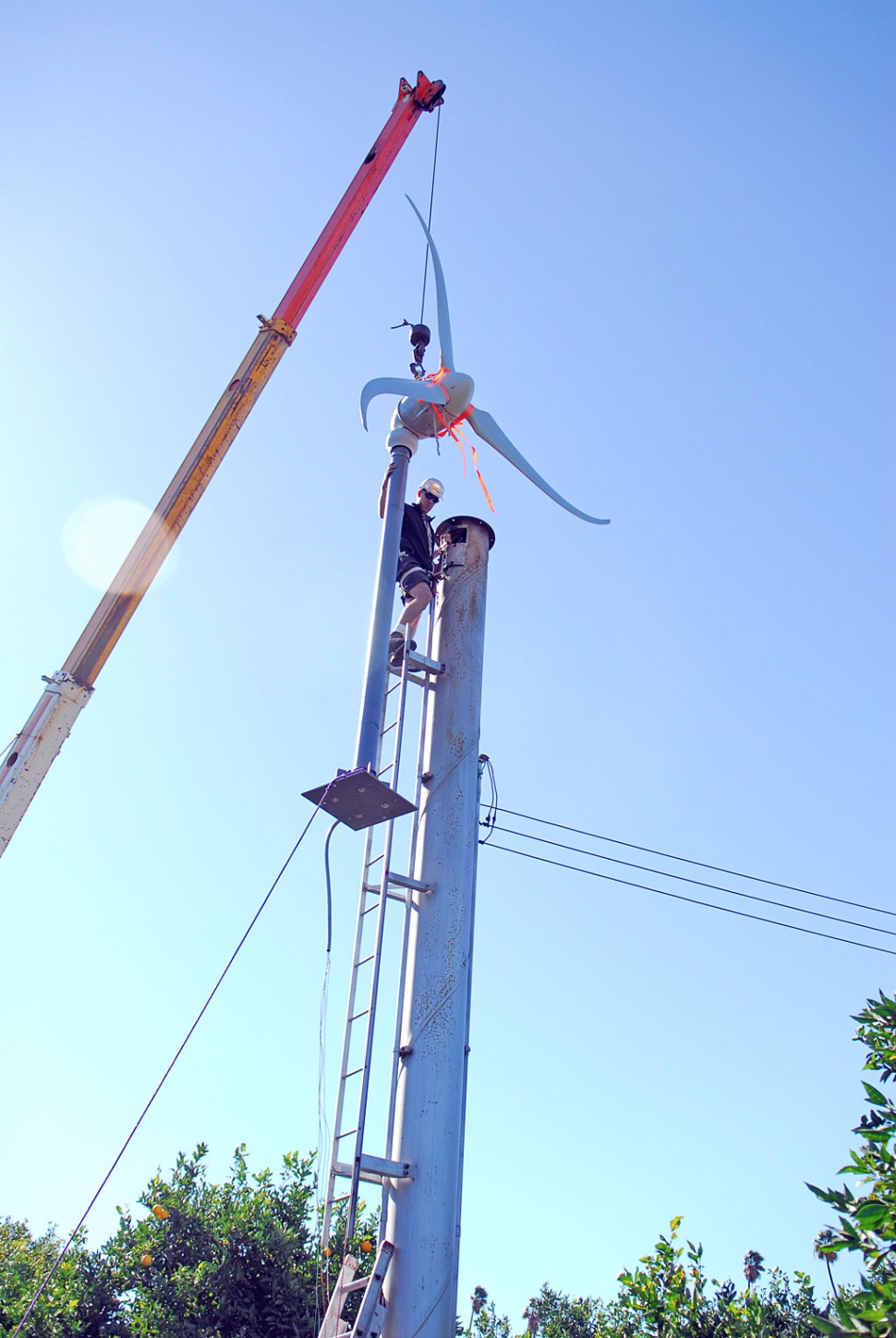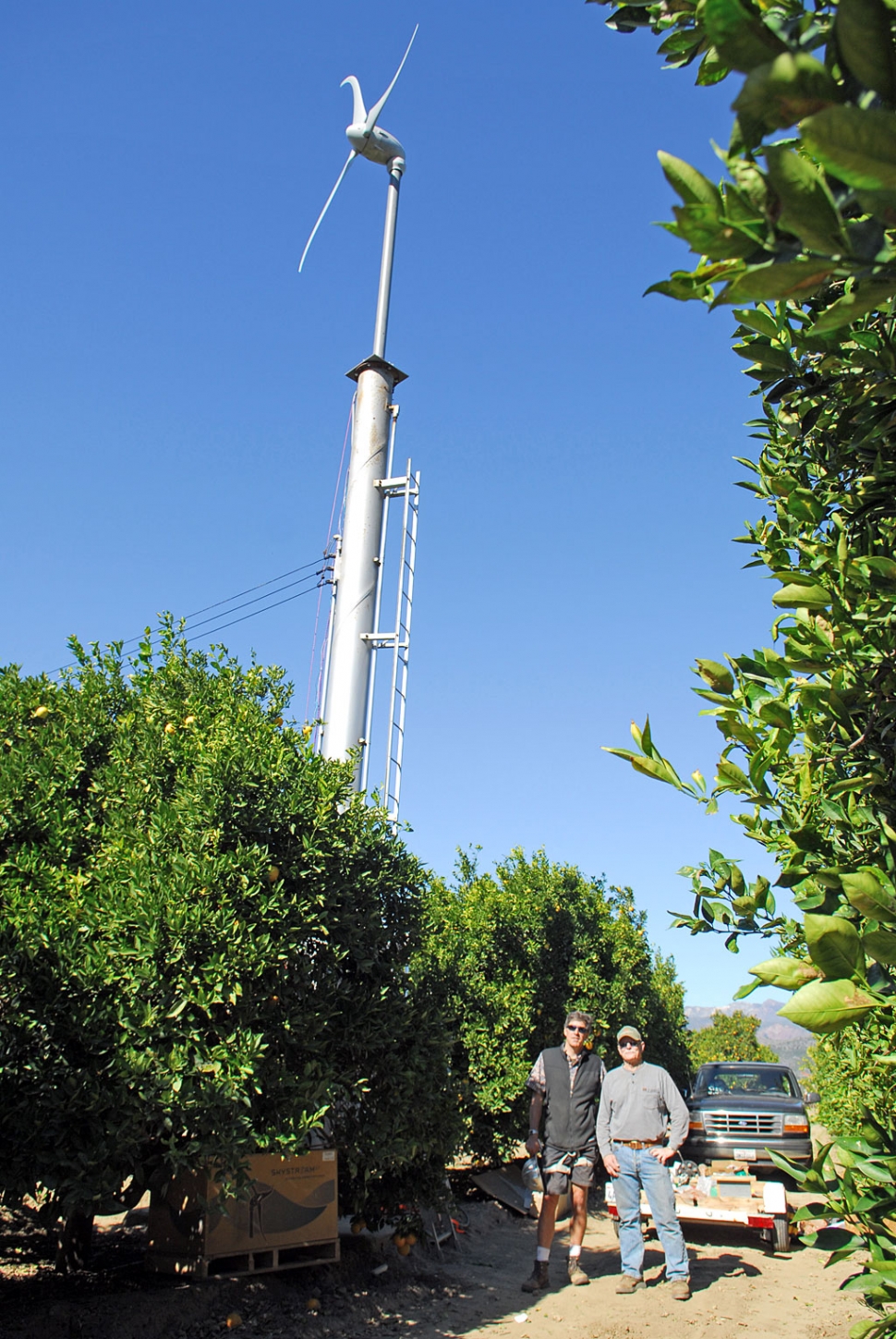 ![]() Bob Hammond succeeds in converting his orchard wind machine into a wind generator. Above, Bob Hayes, of Prevailing Wind Power of Redondo Beach, guides the crane operator as the new generator, prop, and extension are hoisted atop what was once a wind machine tower in Hammond’s Bardsdale orange grove. Story will appear in next week’s Gazette. ![]() ![]() ![]() ![]() ![]() ![]() ![]() |