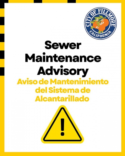 Routine sewer system maintenance is scheduled to take place in the North Fillmore area. This work is part of the City’s regular efforts to maintain sewer infrastructure. Activities will occur at various locations in the North Fillmore area and may require temporary traffic adjustments around work equipment, though no significant impacts are anticipated. Please use caution when traveling near work areas. For questions, contact the Public Works Department 805-524-1500 ext. 233. Posted January 8, 2026 at 6:30p.m. courtesy https://www.facebook.com/cityoffillmore. |
