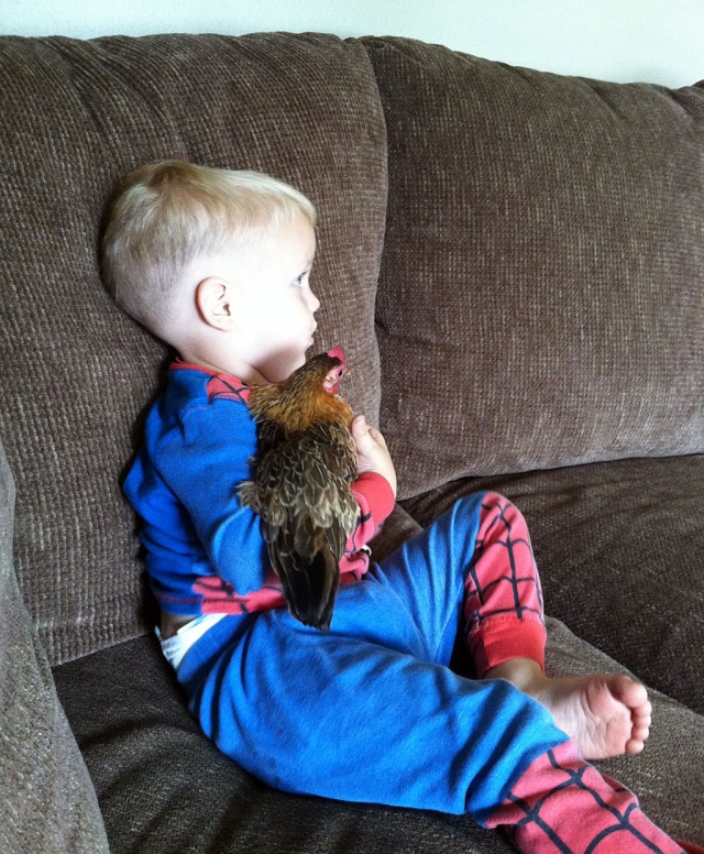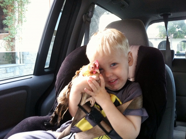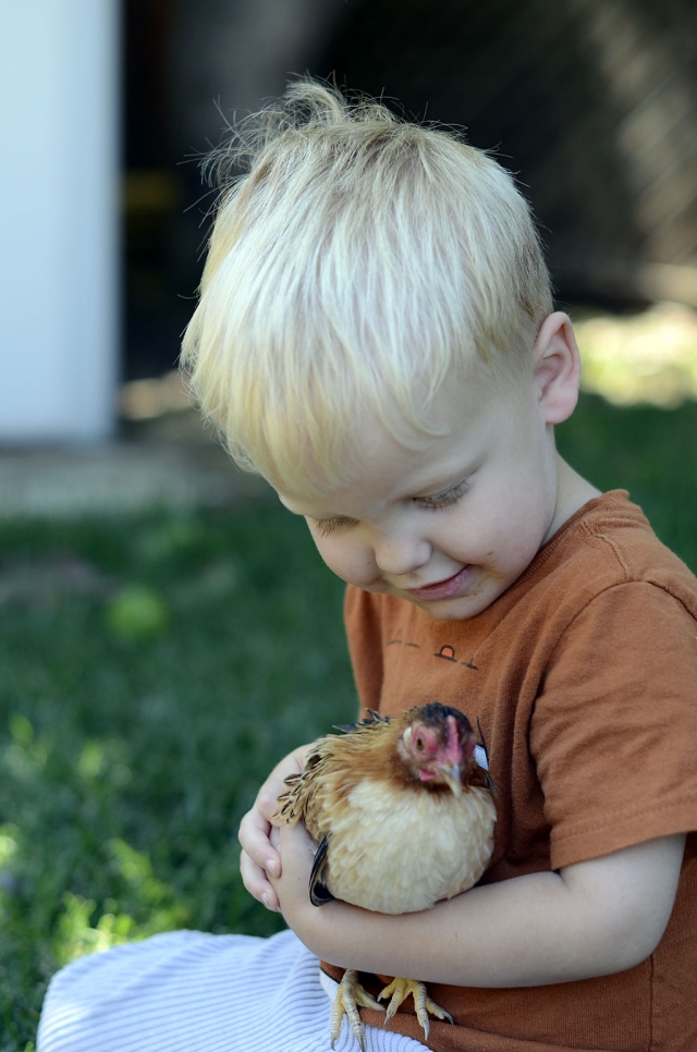 Never have I met anyone who has had a love for chickens as much as Luke Samuel Kraft. Since he was just one year old, he developed this love for chickens and eggs. He started collecting the eggs from his four hens daily to be a little helper to his Mommy. It’s a favorite thing for him to do. During the summer of 2012 his Pop (grandpa) took him to get a bantam pair of chickens for himself. He was so excited to have his own set of chickens. Little ones, just for him. He helped his daddy make a special coop for them too. He named the boy “Rooster” and the hen “Girl”. He loves his girl the most. Luke can’t wait until she starts laying some eggs. Luke goes outside every day to check her and let them out of the coop to roam for the day. Often he will bring Girl inside for a short time. There he holds her and they read stories together, watch cartoons, he talks to her and cares for her. When they are outside he will play in the sandbox with her and follower her around the yard. In the fall when Luke went to choose his pumpkin he insisted that Girl needed a pumpkin too. For Christmas he found a nest for her and was excited to give it to her as a gift. He will often push her in his little shopping cart and go down the street to his grandparent’s house to visit and share his girl. For his third Birthday he requested to have a “chicken party” and he wanted a cake that looked just like his “girl”. So off we went looking for the perfect cake topper and he found one! Of course, it looked just like girl too. Occasionally he gets to bring her in the car if we are running quick errands. This little hen is the sweetest thing. She won’t run or fly away from him. Sometimes she will just look up at him with the sweetest look. She seems to love Luke Samuel just as much as he loves her. |
