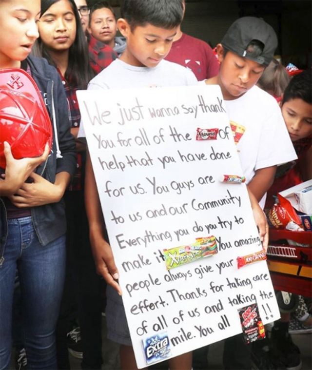 ![]() Fillmore Fire Station 91 would like to thank the special visitors from Full Circle Learning in Piru who came out to the station and presented the crew with thank you signs and gifts made by the students, thanking the firefighters for all they do in the community. Photos courtesy Fillmore Fire Department. Enlarge Photo |