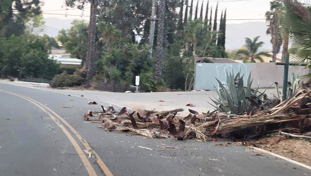 ![]() On Wednesday, January 8, 2025, overnight high winds reached 50-80mph throughout Fillmore causing debris to be left in the roadways around town. Above are some Palm tree branches which fell in North Fillmore. Photo credit Gazette staff. Enlarge Photo |