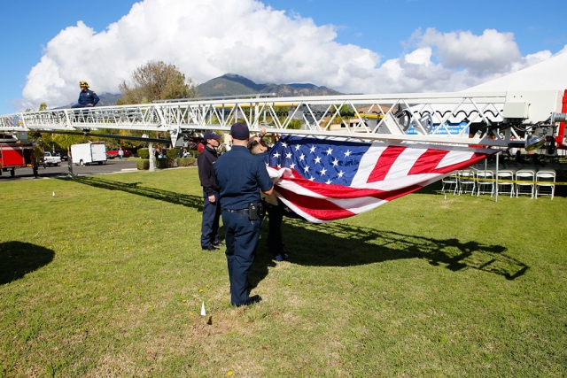 ![]() Fillmore Fire Chief Rigo Landeros is presented with an appreciation plaque by Pastor Golden. Enlarge Photo ![]() Fillmore First Baptist Pastor George Golden presents Fillmore Police Chief Dave Wareham with an appreciation plaque. Enlarge Photo ![]() A CHP officer, representing the agency, is thanked by Pastor Golden with an appreciation plaque. Enlarge Photo |
