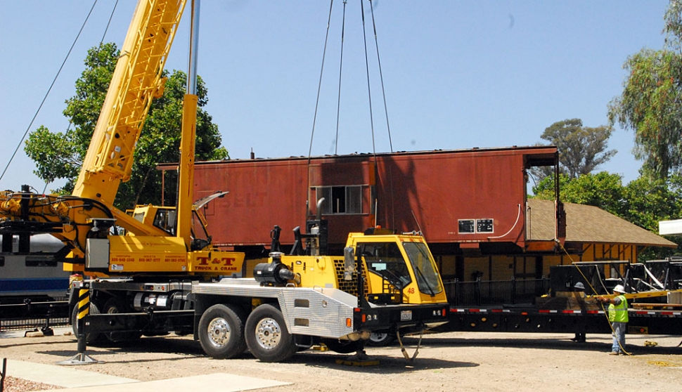 | Caboose moved to Fillmore Historical Museum By Anonymous — Wednesday, June 16th, 2010  Wednesday, June 16, The Fillmore Historical Museum, moved a caboose from Bud Lowe’s property in Hopper Canyon. T and T Crane Company removed the caboose from the flatbed and lowered it to a piece of track next to the depot.   |