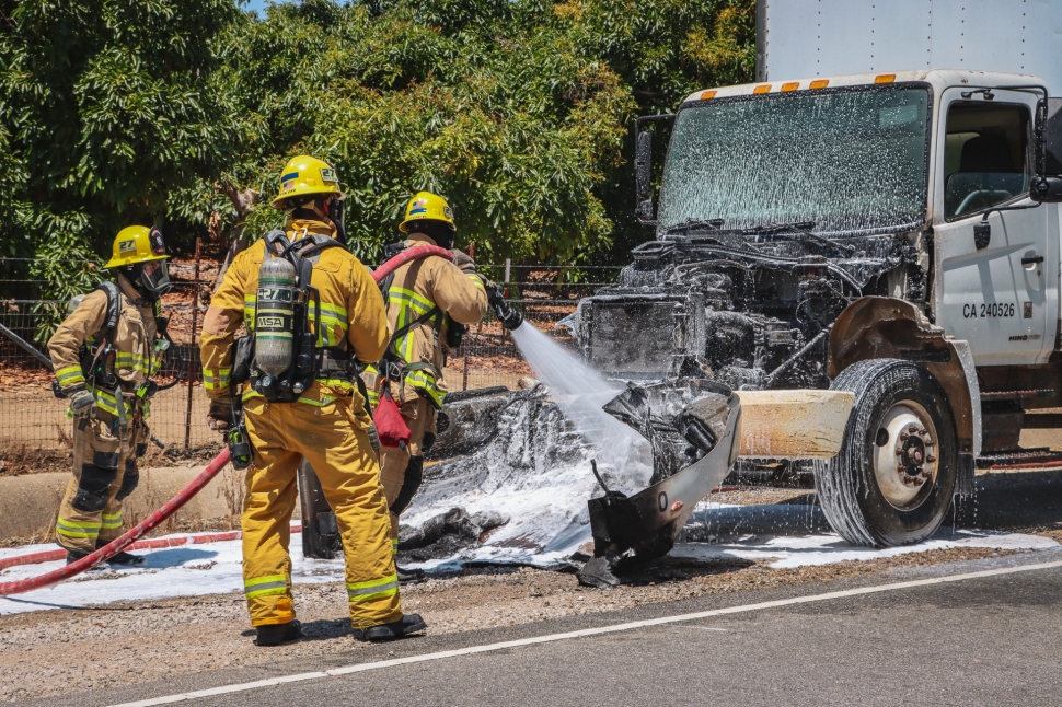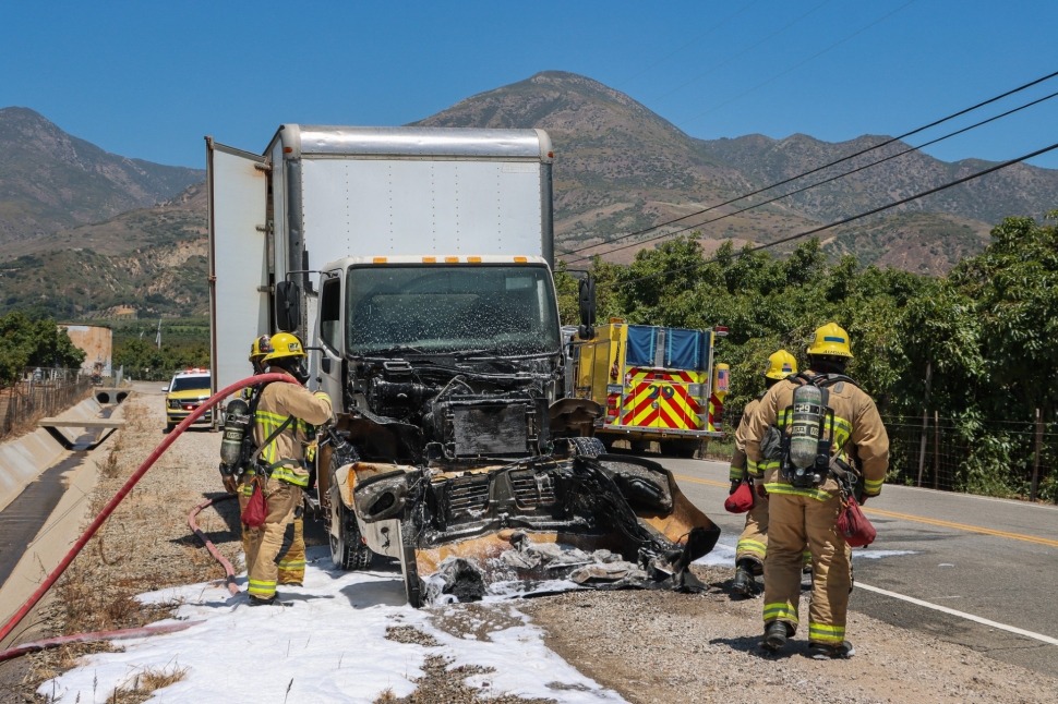 On Friday, June 28, at 11:35 a.m., the Ventura County Fire Department responded to a reported vehicle fire near Seventh Street and Oak Avenue. Arriving firefighters discovered a box truck with flames coming out of the engine; the driver was able to escape safely. On-scene firefighters were able to knock down the flames within minutes. Photo credit Angel Esquivel-Firephoto_91. |