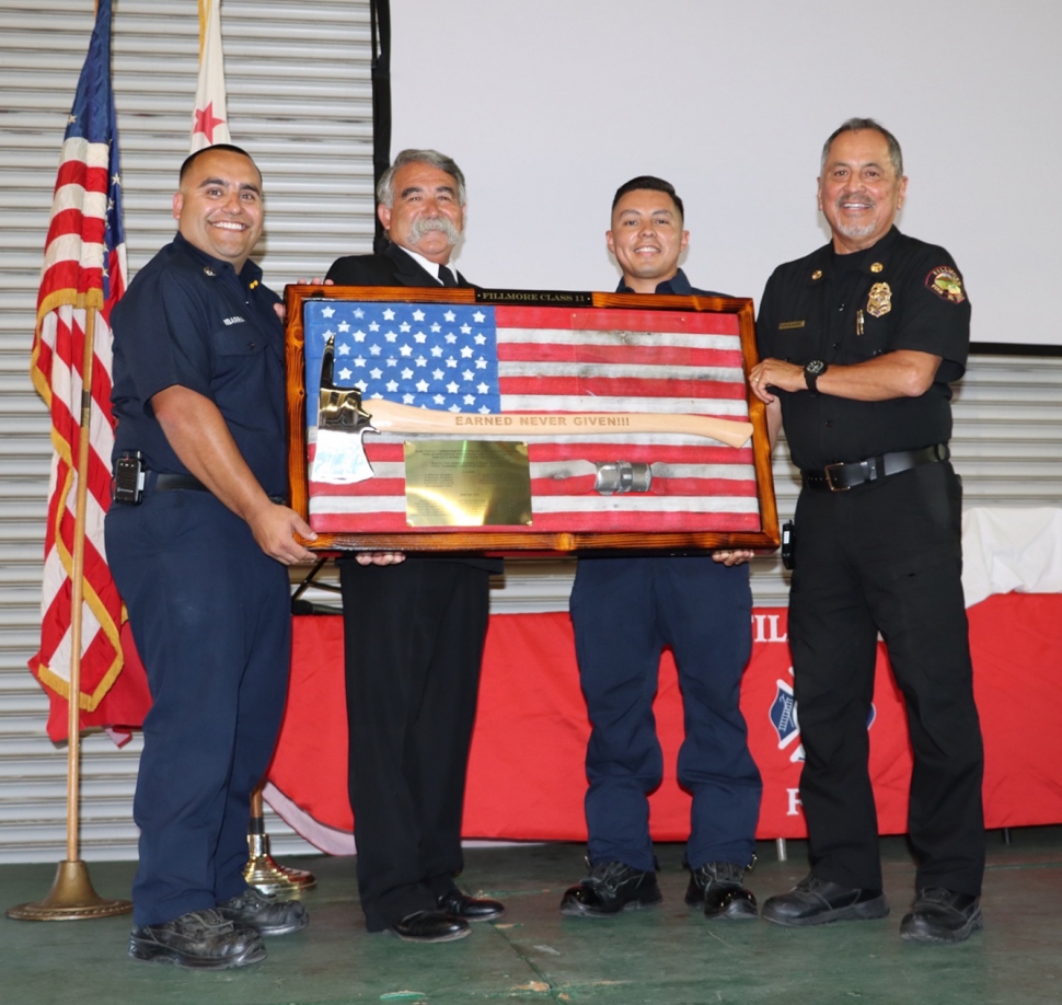 ![]() On Wednesday, July 3, 2024, the Fillmore Fire Department held a graduation ceremony for 17 individuals for the Class 11 Fillmore Fire Academy. Pictured above is Pedro Zepeda, class spokesman, addressing family, friends and other guests for the graduation class. Pictured below is Fillmore Fire’s Sal Ibarra, Fillmore Fire Chief Keith Gurrola, Pedro Zepeda and Battalion Chief Ron Ramirez presenting the Class 11 plaque. Photo credit Angel Esquivel. ![]() |