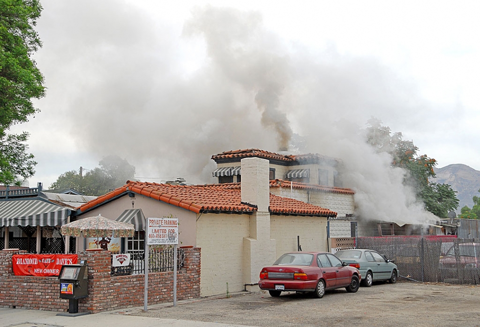 ![]() A crowd gathered in Central Park on Monday, August 3, to watch the Fillmore Fire Department and supporting units fight a fire at a popular restaurant. At approximately 9:55a.m. the City of Fillmore Fire Department responded to a report of a kitchen fire at Diamond Dave’s Cafe located at 454 Santa Clara Avenue, Fillmore. Upon arriving on scene firefighters observed heavy smoke from the rear entrance and rooftop of the structure. Shortly after entering the structure, firefighters were able to launch an aggressive attack resulting in minimal damage to three rooms and the exterior of the structure. The fire was knocked down within 15 minutes of the arrival of the first unit. The restaurant was closed at the time of the incident preventing any injuries to occupants or bystanders. Additional resources from the City of Santa Paula and County of Ventura were requested shortly after the time of dispatch. The cause of the fire remains under investigation. The building is owned by Frank and Stacy Mutz and was leased by Dave Burns. ![]() The fire, which started in the kitchen area, produced substantial smoke. ![]() The gas line is shut down. ![]() A neighbor quickly attempted to assist with fighting the fire, and stayed with it for about 20 minutes. ![]() ![]() The smoke was thick, and filled the entire structure. No injuries occurred and no structural damage. |