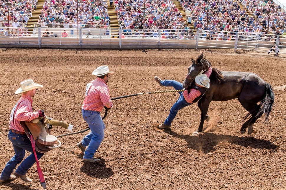 ![]() The 2014 Ventura County Fair Rodeo was full of thrills and spills this year. Following are the rodeo results: All-around cowboy: Trenten Montero, $1,250, bareback riding and bull riding. Bareback riding: First round: 1. Trenten Montero, 78 points on Rosser Rodeo’s Holy Seminole, $366; 2. Tyson Thompson, 72, $275; no other qualified rides. Second round: 1. Tyson Thompson, 80 points on Flying U Rodeo’s No. 792; $366; 2. Trenten Montero, 74, $275; 3. Kid Banuelos, 46, $183; no other qualified rides. Average: 1. (tie) Tyson Thompson and Trenten Montero, 152 points on two head, $320; 3. Kid Banuelos, 46 on one head, $183. Steer wrestling: First round: 1. Matthew Ferroni, 21.5 seconds, $266; 2. Justin Ritchea, 24.3, $200; no other qualified runs. Second round: 1. Justin Ritchea, 8.8 seconds, $266; 2. Blaine Jones, 14.3, $200; 3. Matt Deskovick, 14.8, $133; no other qualified runs. Average: 1. Justin Richea, 33.1 seconds on two head, $266; 2. Blaine Jones, 14.3 on one head, $200; 3. Matt Deskovick, 14.8, $133. Team roping: First round: 1. Ed Necochea/Danny Necochea, 5.0 seconds, $423 each; 2. Kelly Barker/Jake Twisselman, 5.2, $318; 3. (tie) Clay White/John Chaves and Travis Xavier/Mike Monighetti, 5.6, $159 each. Second round: 1. Clint White/Evan Arnold, 5.1 seconds, $423 each; 2. Travis Xavier/Mike Monighetti, 5.4, $318; 3. Paul Mullins/Clayton Grant, 5.5, $212; 4. Blake Hirdes/Joseph Shawnego, 5.9, $106. Average: 1. Travis Xavier/Mike Monighetti, 11.0 seconds on two head, $635 each; 2. Ed Necochea/Danny Necochea, 11.8, $476; 3. Paul Mullins/Clayton Grant, 11.9, $318; 4. Blake Hirdes/Joseph Shawnego, 12.6, $159. Saddle bronc riding: First round: 1. Jess Williams, 73 points on Rosser Rodeo’s Moon Shine, $375; 2. Michael Maher, 69, $281; 3. Mert Bradshaw, 65, $187; 4. Joe Heguy, 64, $94. Second round: 1. Mert Bradshaw, 75 points on Rosser Rodeo’s Little Chief, $375; 2. (tie) Jess Williams and Michael Maher, 74, $234 each; 4. Joe Heguy, 70, $94. Average: 1. Jess Williams, 147 points on two head, $375; 2. Michael Maher, 143, $281; 3. Mert Bradshaw, 140, $187; 4. Joe Heguy, 134, $94. Tie-down roping: First round: 1. John McGill, 11.1 seconds, $315; 2. Justin Lane, 11.4, $236; 3. (tie) Scott McCulloch and Chad Krainock, 11.7, $118 each. Second round: 1. Blaine Jones, 10.8 seconds, $315; 2. (tie) Cody Collins and Mason Malone, 11.6, $197 each; 4. Chad Krainock, 13.0, $79. Average: 1. Blaine Jones, 24.2 seconds on two head, $472; 2. Chad Krainock, 24.7, $354; 3. Taylor Winters, 25.4, $236; 4. Justin Lane, 26.3, $118. Barrel racing: 1. Ann Scott, 13.52 seconds, $575; 2. Rachael Ross, 13.66, $500; 3. Courtney Cline, 13.83, $425; 4. Karla Sanchez, 13.87, $350; 5. Cambria Estep, 13.92, $275; 6. Erin Ricotti, 13.98; 7. Dude Overton, 14.07, $125; 8. Candy Forsberg, 14.08, $50. Bull riding: First round: 1. Michael Hough, 68 points on Rosser Rodeo’s Party Crasher, $578; 2. Sammy Matthews, 67, $433; 3. Josh Daries, 64, $288; 4. Kaycee Rose, 40, $144. Second round: 1. (tie) Tyler Stueve Knoles, on Flying U Rodeo’s Loco Weed, and Christopher Byrd, on Flying U Rodeo’s Bugman, 78 points, $505 each; 3. Dylan Vick, 75, $289; 4. Trenten Montero, 72, $144, $289. Average: 1. (tie) Tyler Stueve Knoles and Christopher Byrd, 78 points on one head each, $505 each; 3. Dylan Vick, 75, $289; 4. Trenten Montero, 72, $144. Total payoff: $24,548. Stock contractor: Flying U Rodeo and Rosser Rodeo. Rodeo secretary: Cindy Rosser. Officials: Steve Yoast and Bill Pacheco. Timers: Karin Rosser and Cindy Rosser. Announcer: Steve Goedert. Specialty act: Frankie Smith. Bullfighters: Donnie Castle and Chance Jackson. Clown/barrelman: Frankie Smith. Flankman: Paul Greer and Tony Amaral. Chute boss: Tony Amaral and Reno Rosser. Pickup men: Jake Twisselman and Bronc Boehnlein. Photographer: Gene Hyder. ![]() ![]() ![]() ![]() ![]() ![]() ![]() ![]() ![]() ![]() ![]() ![]() ![]() ![]() |