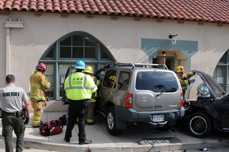 SUV Jumps Curb, Crashes into Downtown Central Avenue Building