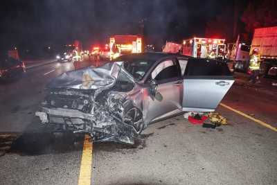 On Wednesday, July 2nd, at 8:45pm, multiple units responded to a traffic collision at Ventura Street west of D Street. Upon arrival six people were treated by e4mergency crews, five were transported to a local hospital for treatment. Two people, a 28-year-old female from Oxnard and a 5-year-old male child from Fillmore, unfortunately passed away. Photo credit Angel Esquivel.