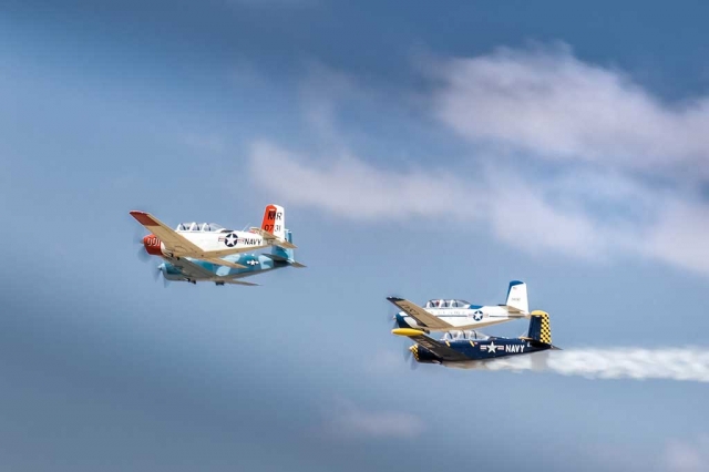 I had it all figured out for the Wings Over Camarillo airshow last weekend. Properly programming the camera was key to capture very fast flying airplanes. Furthermore, I even went deep into the bowels of my Canon 7D-MKII's menu system where adjustments reside. For example, I can choose: Case 1; Versatile multi-purpose setting. Case 2; Continue to track subjects, ignoring possible obstacles. Or Case 3; Instantly focus on subjects suddenly entering AF points. Or Case 4; For subjects that accelerate or decelerate quickly. Last, Case 5; For erratic subjects moving quickly in any direction. Decisions, decisions! Also, within each “Case”... adjustments to tweak each focus mode. My dilemma: What focus 'Case' to use considering not all planes fly at the same speeds and sometimes more than one plane enters my camera's viewing frame. Showtime was noon but I arrived early about 9 am both days to both secure a prime parking space and to have time to shoot some ground displays. For these, I used Case 1. Having a 'media' clearance for the show, I was near the air boss stand on the taxiway. Prime area. On the flight line I opted to 'try' “Case 3” for the first time. Worked fine for single planes. But when multiple planes were in the air the camera/lens focus points confused me at the outset. Another learning curve. Eventually I got the hang of it. More troublesome though than photoing mermaids frolicking on sea buoys. At first glance, this might sound troublesome. Woe is thou without challenges! The options are what makes photography a creative process to be savored. Furthermore, such decision making keeps a mind strong and flexible. Phonetographers... take note! I arrived at the airport Sunday morning about 9:30 and headed for the Ninety-nines pancake breakfast: FYI, two pancakes and two sausages. After a few more ground display shots, I was ready for the show at noon. However, for Sunday I decided to switch back to Case 1 but also changed from “single shot” mode to 'servo focus'. Both days I used Tv (shutter priority) camera mode. The Commemorative Air Force (CAF) restored old war planes of yesteryear are interesting historical machines. Watching these fascinating planes fly is exciting. Photoing the air show... nirvana! Even with prevailing 'creative' challenges. Now a word about the photo of the day. Each day a jumper with the U.S. Flag started the airshow. This photo was shot on Sunday. Notice the jumper, the flag and background are in focus. Check the photo data: Shutter speed: 1/100th/second. No need for a faster shutter speed for the descending jumper. Then ZOOM... the very fast P-51 Mustang entered the frame (composition) at the precise moment I pushed the shutter button. BOOM: Exquisite blur! How else would you know the Mustang was flying V__E__R__Y fast??? 'Fine Art' photojournalism like this takes meticulous planning. And incredible timing! Or did you think it was simply a mistake? Truth be told, it was serendipity! Imagine my surprise when I saw the Mustang coming in very fast and much lower. No time to change the shutter speed. It was literally split-second timing. Had I expected the plane to fly by lower, I might have preset a higher shutter speed to capture the plane normally... without blur. BUT, would it be as interesting? Or as 'creative'? Moral of the experience: Embrace serendipity! Send your comments, questions or suggestions to: bob@fillmoregazette.com [Editor's Note: click here to see all of Bob's air show photos: http://www.fillmoregazette.com/front-page/%E2%80%9Cwings-over-camarillo%E2%80%9D-air-show-1] |