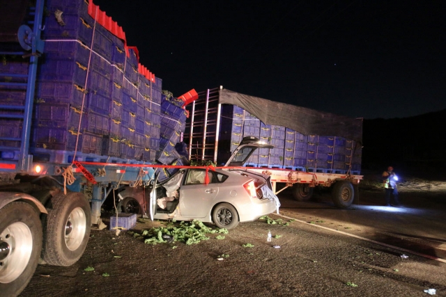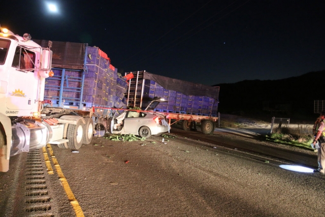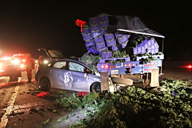 ![]() On Monday, January 5th, the California Highway Patrol and Ventura County Fire responded to a traffic accident involving a double trailer big-rig carrying kale, and a Toyota Prius. At approximately 6:50pm the truck was coming out of a private driveway and the Toyota struck the first trailer tire. the driver of Toyota was transported by helicopter to an area hospital with moderate to major injuries. Highway 126 at Center Street was shut down for about an hour while the debris from the truck and the blockage was cleared. Photos courtesy Sebastian Ramirez. Enlarge Photo |