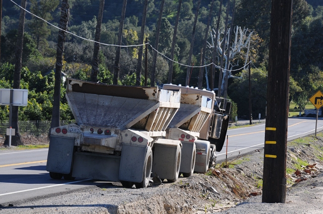 ![]() This sedan ended up in a ditch on Highway 23, Chambersburg Road, at Pasadena Avenue in Bardsdale, Monday at 1:30pm. The truck sustained frontend damage on the bumper. An ambulance was on scene. Minor injuries were reported by the CHP. Enlarge Photo |