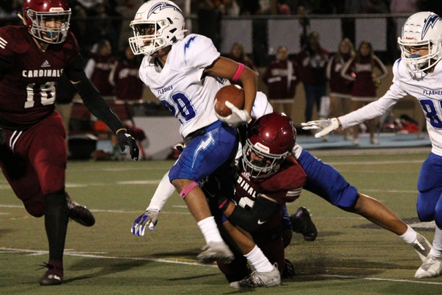 ![]() On Friday, October 22nd, the Fillmore Flashes played and defeated longtime rival Santa Paula 57 to 7 for the 110th meeting of the teams. Above are the Flashes celebrating after the big victory and hoisting the famous Leather Helmet which will be returning to Fillmore. The Flashes overall record is now 6-3, and 2-2 for League. Photos courtesy Crystal Gurrola. Enlarge Photo  |