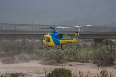 Three subjects were rescued from an island in the Santa Clara River on Wednesday, March 22, from 11:15 am to noon. About 25 units stationed in the 700 block of Burlington Street, while VC Swift Water Rescue helicopter, staging at River & E Street, flew in and transported the subjects and a dog out. All three refused medical attention. More photos and information in next week's Gazette. Photo credit Angel Esquivel-AE News. Rescue caught on video: https://www.facebook.com/AENews805/videos/935689417776000