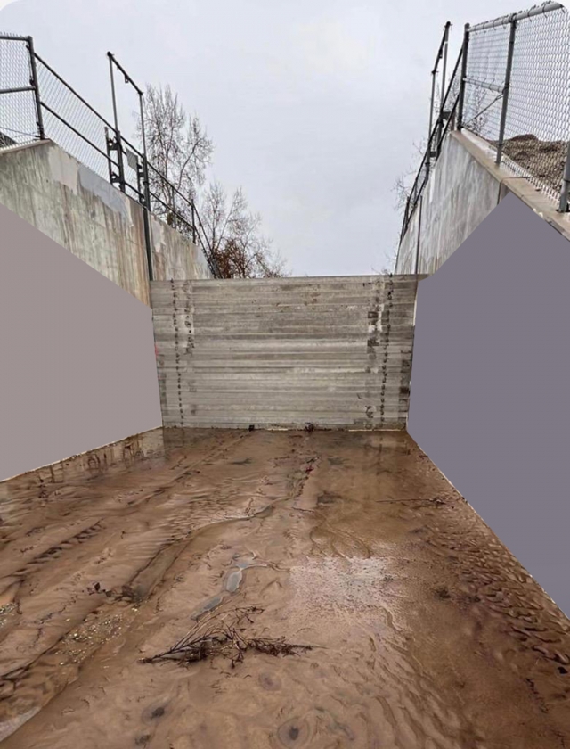 ![]() Pictured is a drainage culvert on the east side of the Sespe River, at Old Telegraph Road, used to handle normal drainage. A flap gate was installed on Monday, January 9th, 2023, by Ventura County Public Works. Aluminum slats were lowered into rails on the side of the culvert to create a barrier. The Sespe River has a riprap levee, a permanent layer of large, angular stone or boulders, mixed with cement, typically used to stabilize and protect the soil surface against erosion and scour in areas of concentrated flow. Stop logs are used for level control in open channels of the river. Logs are beams inserted in grooves cast in a channel wall; typically, nominal height of a stop log is in 6" increments, i.e., the log can be 6, 12, 18" in height, etc. Photo credit Alex Caldera. Enlarge Photo |