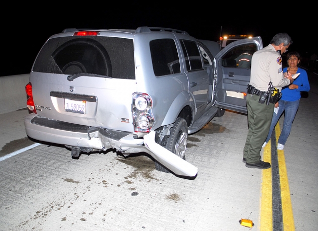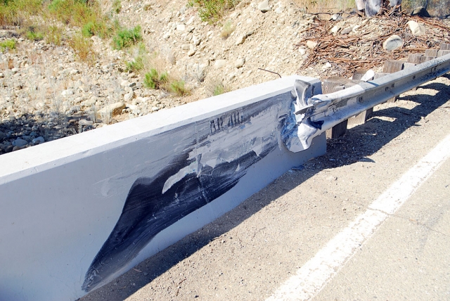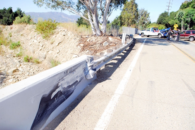 ![]() At approximately 11:00 a.m., Friday, ambulance, rescue, and Sheriff’s personnel responded to a vehicle accident call on Sycamore Road. An Infinity SUV had struck an abutment near Boulder Creek and overturned. The driver and passenger were found walking along the road when help arrived. No injuries were reported. The vehicle suffered significant damage. Enlarge Photo |