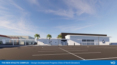 Our updated renderings show the exterior design for our new FHS Athletic Complex. We still need to determine the colors and the image on the west side of the building that will be facing the stadium. Our architects are working to finish the interior design and plan for the required solar power installation. This plan set is currently being costed to ensure that we are within the School Board’s funding allocation for this facility.