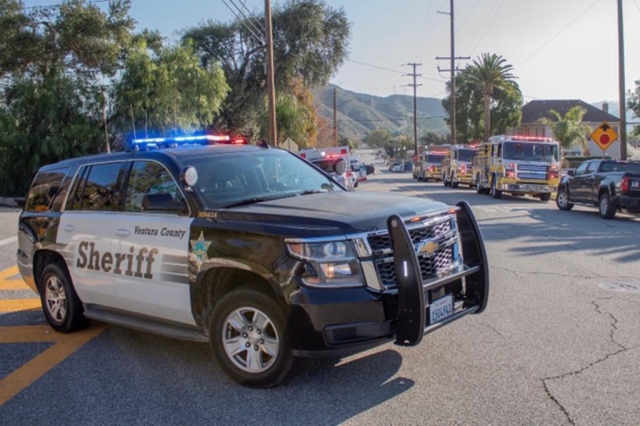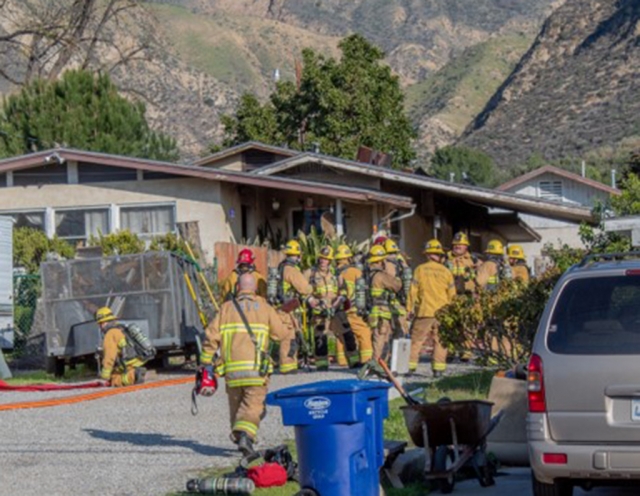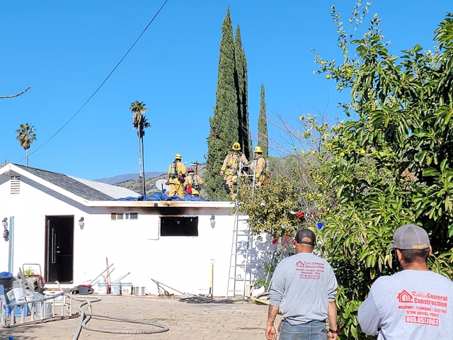 | By Gazette Staff Writers — Wednesday, January 26th, 2022  On January 21st, 2022, at 8:18am, the Ventura County Fire Department, Fillmore City Fire, EMS (AMR Supervisor Paramedic), Los Angeles County Fire and AMR paramedics were dispatched to a reported structure fire in the 3000 block of Center St., Piru. Arriving fire crews found a single-story single-family home with smoke displayed. Fire crews were making a transitional attack at the time. All residents were reported out. Two AMR ambulances were dispatched to the incident with one person treated for possible smoke inhalation. Fire was knocked down by 8:44am, and fire crews were checking for areas that the fire may have extended to. Fire investigator and Red Cross were also on scene. The Ventura County Sheriff’s Department was on scene with road closers at Center and Park Street, and Center and Main Street. Cause of the fire is under investigation. Photo Credit Angel Esquivel-AE News. Enlarge Photo |