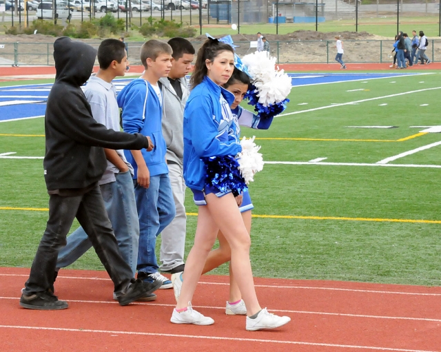 ![]() “Every 15 Minutes” is a reinactment of what can happen in the event of drinking and driving. The event was put on by the Fillmore Fire Department and the Ventura County Sheriffs Department. Above, Officer Anthony Biter arrives on scene after the driver of the car calls 911 for help. Students involved in the simulation are (right car) Josephina Hernandez (through windshield), Sergio Cornejo not pictured (driver), in back seat Breanna Vazquez (air-lifted). Left car: driver Jessica Givans, and passenger Brandon Pina. Enlarge Photo By Anonymous — Wednesday, May 18th, 2011