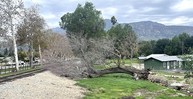A tree fell at Old Telegraph Road/Landeros Lane last week due to high winds, with no damage to the seasonal/migrant worker housing. Photo credit Angel Esquivel. |