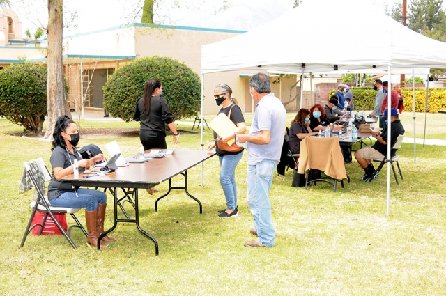 | By Anonymous — Wednesday, April 14th, 2021  Wednesday, April 7th & 14th between 10am and 3pm residents lined up behind the Veterans Memorial Building to receive their COVID-19 vaccines hosted by the County of Ventura. The next Vaccine Clinic’s will be held April 21st & 28th from 10am – 3pm at the Veterans Memorial Building. To receive a vaccine, residents must register at https://www.ventura county recovers.org/. Also, please note that only eligible individuals based on the current vaccine tiers will be able to obtain a registration. Enlarge Photo |