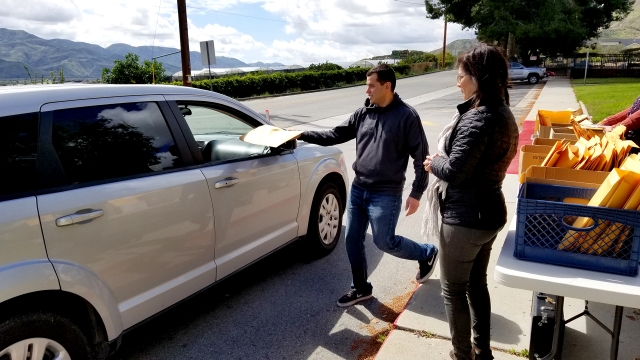 ![]() On March 24th from Noon to 4pm, Piru Elementary staff handed out distance learning materials to students on Center Street. Prepared packets were created for each student and distributed to families who pulled up to the drive through. Staff did a great job handing out materials while maintaining good social distancing. Enlarge Photo |