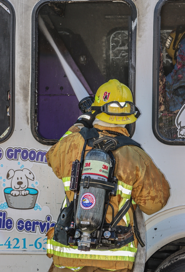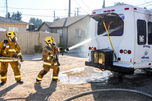 On Wednesday, October 9th, at 8:36 a.m., Fillmore City Fire Department responded to a reported vehicle fire in the 700 block of Fifth Street. Arriving firefighters found a fire-destroyed mobile dog grooming bus; the fire was knocked out before firefighters arrived. The cause of the fire is under investigation. Photo credit Angel Esquivel.