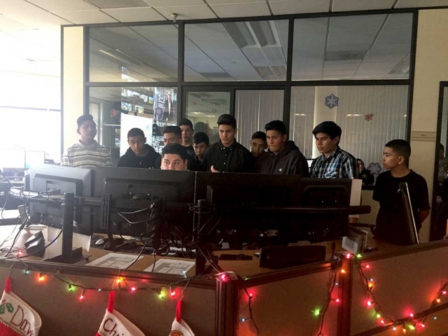 | By Anonymous — Wednesday, December 21st, 2016 Public Safety Club took a field trip to The Ventura County Sherriff’s Office Air Unit in Camarillo  On Wednesday, December 14th, The Fillmore Middle School Public Safety Club took a field trip to The Ventura County Sherriff’s Office Air Unit in Camarillo, the Command Post in Ventura, and the Dispatch Center in Ventura. The Fillmore Middle School Public Safety Club is a pathway club that completes community service hours by assisting the Fillmore Police Explorer Post # 2958 with some of their events and activities in the communities of Fillmore and Piru. The club provides young men and women with experiences to prepare them to become responsible, caring adults. The Public Safety Club also provides students with training and education to develop general interest in public safety. The Fillmore Middle School Public Safety Club would like to thank Deputy Rubalcava, Deputy Valenzuela, Cadet Espinoza, The Ventura County Sheriff’s Office Air Unit and the Dispatch Center for a great learning experience. Story and Photos By Isela Larin. Enlarge Photo |