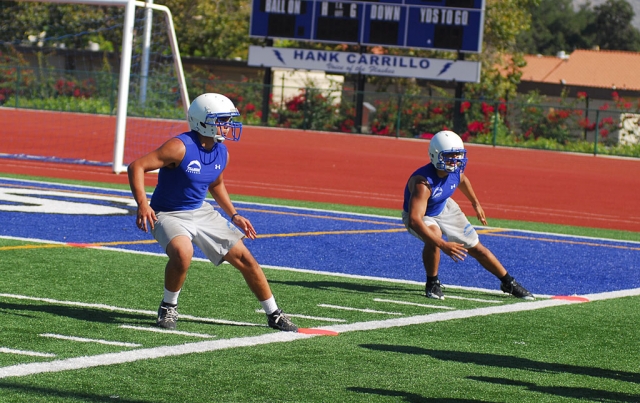 ![]() Jeremy Martinez #72 (J.V) tackles Village Christian player #9, during Friday night’s football game. Enlarge Photo ![]() Johnny Golson #20 tackles #5 during Friday night’s game. Corey Cole #11 and Nick Paz #2 run over to assist Golson with the tackle. Enlarge Photo ![]() Chris De La Paz jumps to catch a pass thrown by quarterback Corey Cole for a touchdown. Enlarge Photo |