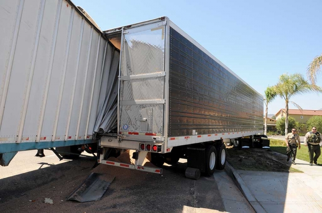 ![]() At approximately 1:00 p.m. Tuesday, an eighteen-wheel tractor-trailer (identified belonging to JSA Soil) carrying a load of sawdust, drove into the rear of another tractor-trailer on Hwy.126 across from Taco Bell. Substantial damage was done to both parties. Enlarge Photo |