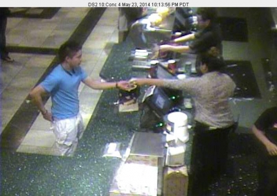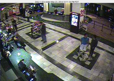 Surveillance images of a suspect who sexually battered a woman in a movie theater restroom last Friday evening reveal another man who was possibly with the suspect at the time. The second man was wearing a light blue polo shirt and white shorts (shown in attached photos). He spoke only Spanish with theater employees, and he is considered a person of interest at this time. Investigators are seeking the public’s help in identifying the suspect in this case and the person of interest, who may have information about the crime. On May 23, 2014, at approximately 11:39 p.m., deputies from the Thousand Oaks Police Department investigated a report of a sexual battery, which occurred at the Muvico Theatre on Hillcrest Drive. The victim reported that while she was in a restroom stall, an unidentified man slid underneath the partition and sexually battered her. After a brief struggle, the victim was able to exit the stall, and the suspect fled from the theater. The suspect was described as a Hispanic male, 5’5” to 5’7”, 130-150 lbs., slender build, brown hair, brown eyes, medium to dark complexion, wearing a grey hoodie and dark-colored jeans. The suspect’s image was captured by surveillance cameras as he was leaving the area of the restroom. The suspect exited the theatre and got into the passenger seat of a black sedan. Anyone with information about the suspect or the person of interest can call Detective Eric Taylor at (805) 947-8252 and any press inquiries can be directed to Sergeant Eric Buschow at (805) 947-8129. Ventura County Crime Stoppers will pay up to $1,000 reward for information, which leads to the arrest and criminal complaint against the person(s) responsible for this crime. The caller may remain anonymous. The call is not recorded. Call Crime Stoppers at 800-222-TIPS (8477). Nature of Incident: Woman Sexually Battered at Movie Theater (UPDATE) |
