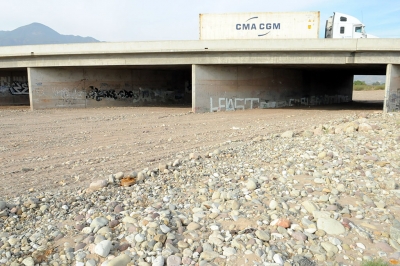 ![]() A westward view of the Fillmore bridge crossing Sespe Creek shows the recent cleanout of rock and debris at the center. Upland Rock has completed the work of grading and removing debris which accumulated over the years at the center of the bridge. The rock presents a flood threat for the western part of the city. Enlarge Photo By Jean McLeod — Wednesday, February 1st, 2012