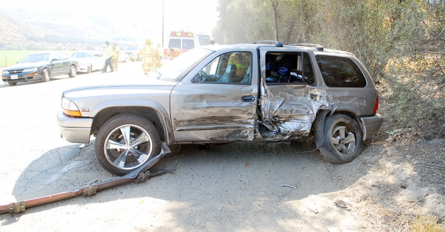 ![]() Sunday, at approximately 4:00 p.m., a three vehicle accident occurred at the intersection of Bardsdale and Sespe Avenue. A westbound car on Bardsdale Avenue traveling at a high rate of speed struck an older model Suburban. Enlarge Photo ![]() Five persons were reported in the Suburban, including three children and two adults. The Suburban was thrown approximately 50 feet into a dump truck parked in front of a residence near the intersection. Injuries to the occupants of the Suburban were not available. Enlarge Photo ![]() The adult male driver of the car was taken by ambulance to a local hospital for observation. The force of the impacts destroyed a heavy steel barrier and some signage. Extensive damage was done to all three vehicles. Enlarge Photo |