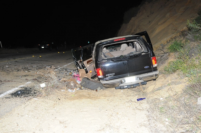 ![]() At approximately 10:45 p.m. the female driver of a Ford Excursion attempted to turn her vehicle around on Grimes Canyon when she lost control and plunged over the edge of Highway 23 and into the canyon. Enlarge Photo ![]() The driver’s injuries were not reported at press time. She was transported to a local hospital by ambulance. The vehicle shown here had been pulled from the canyon following the incident. Enlarge Photo |