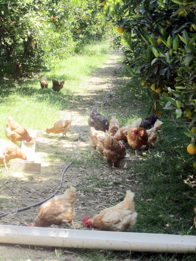 Last week’s gloomy weather couldn’t dampen the mood at the Fillmore Community Farmer’s Market. Shoppers were treated to an abundance of bright vegetables, stone fruit and flowers. Consumers also had a chance to purchase fresh eggs from Shepard Farm. Shepard Farm is owned and operated by Bob and Barbra Shepard. They are primarily organic citrus growers. In their orchards they do not use chemicals or sprays. A little more than a year ago, the Shepards came up with the idea of using chickens to control the weeds with the added benefit of using the chicken manure to fertilize the trees. The fencing used to contain the chickens around the trees is portable. This enables the Shepards to move the chickens to different locations once the weeds are eaten down. This makes for very happy chickens and healthy eggs for the consumer. The Shepards raise several different varieties of chickens which include Rhode Island Reds and Red Stars that produce brown eggs. You can also purchase blue eggs which are laid by the Americana chickens. The eggs range in size from small to large and can be purchased for $4 to $6 a dozen. Currently the Shepards have 500 laying chickens and 300 chicks on their farm which supply about thirty dozen eggs a day. To be able to sell their eggs at the farmer’s market, the Shepard’s business was approved by an inspector from the Ventura County Agriculture Commissioner’s Office. The Shepards have a California Certificate of Production to sell their eggs at the markets. When asked why she enjoys the Fillmore Community Farmers Market, Barbara said “The people are very friendly, they are here trying to get the best quality food they can and it’s nice to be apart of that.” The Shepards also sell oranges but their varieties are currently not in season. Besides Fillmore, they also sell at farmer’s markets in Simi Valley, Oak Park and Woodland Hills. The Shepard Farm is located in Bardsdale and is not open to the public, so come visit Shepard Farm every Wednesday from 3:30-7pm on Central and Main St at the Fillmore Community Farmer‘s Market. |