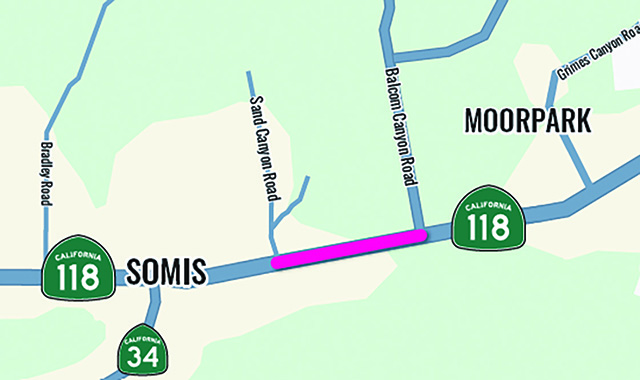 State Route 118 between Sand Canyon Road and Balcom Canyon Road.
