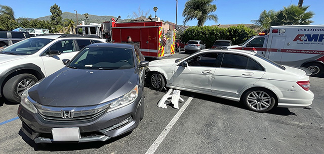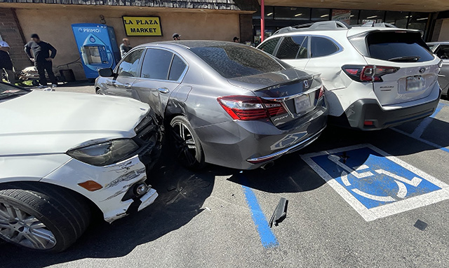 Within a few minutes of cancelling the pursuit, at about 12:46 PM, Sheriff’s Dispatch received numerous 911 calls of a hit and run traffic collision at La Plaza Market located at 1055 Ventura Street in Fillmore. Reporting parties described three occupants as fleeing the vehicle which matched the description of the vehicle involved in the pursuit.