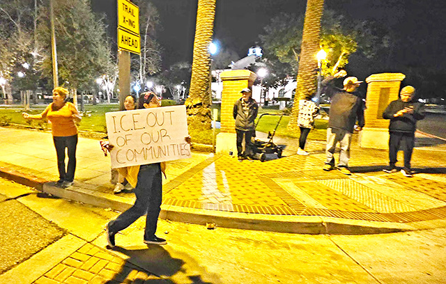 On Friday, January 30, 2026, from approximately 5:30-7:30pm, about six Immigration and Customs Enforcement (ICE) protesters gathered in front of Fillmore City Hall. Following is the link to Homeland Security’s website, “Arrested: Worst of the Worst”, for Ventura County: https://www.dhs.gov/wow?combine=ventura&field_country_of_origin_target_i.... The U.S. Department of Homeland Security is highlighting the worst of worst criminal aliens arrested by the U.S. Immigration and Customs Enforcement. Photo credit Sebastian Ramirez. |