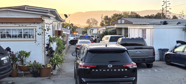 ![]() At approximately 7am on Monday, October 6, 2025, LAPD officers served a warrant at Fillmore West Trailer Park, 1906 Old Telegraph Road, Fillmore regarding a robbery investigation that occurred in their jurisdiction. There were unconfirmed reports of flash bangs being used. A Fillmore Sheriff’s patrol unit was on-scene as liaison in the event of an emergency; they had no involvement in the service. Photo credit Sebastian Ramirez. Enlarge Photo |