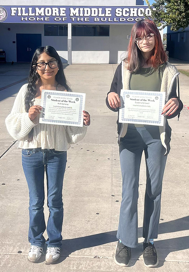 Fillmore Middle School Principal Jenny Plugge said, “We want to celebrate our students of the week. Miah Izarraras, Esabella Hollowell, and Marley Casarez (not pictured). Congratulations to these Bulldogs for demonstrating Bulldog Pride.” Courtesy https://www.facebook.com/photo.php?fbid=1430935285700615&set=a.103743886.... |