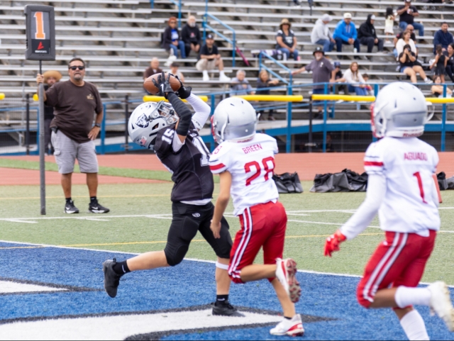 ![]() On Saturday, September 27th, Fillmore Raiders Youth Football held games at FHS Football stadium. Above is Fillmore Bantam Silver’s #21, leaping to make the tackle again Moorpark Musketeers. Inset, the Raiders Freshmen game against Valley Rush. Photo credit Crystal Gurrola. See additional Mighty Mites and Raider photos online at www.FillmoreGazette.com. Enlarge Photo |