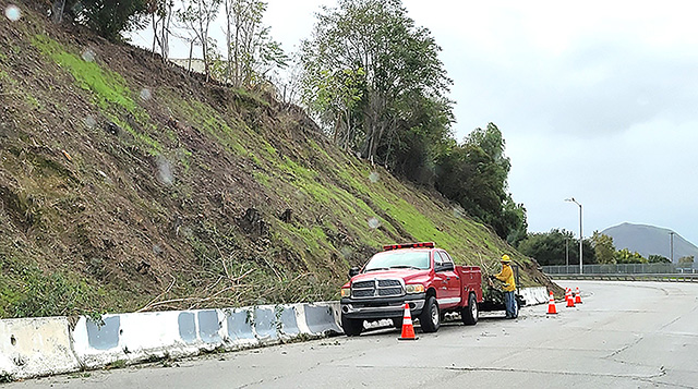 On Friday, November 21, at 9:30am, the Fillmore Fire Department cleared out debris that collected along the embankment at the bottom of the hill at A Street, south of 3rd Street, caused by last week’s rain. Photo credit Gazette staff. |
